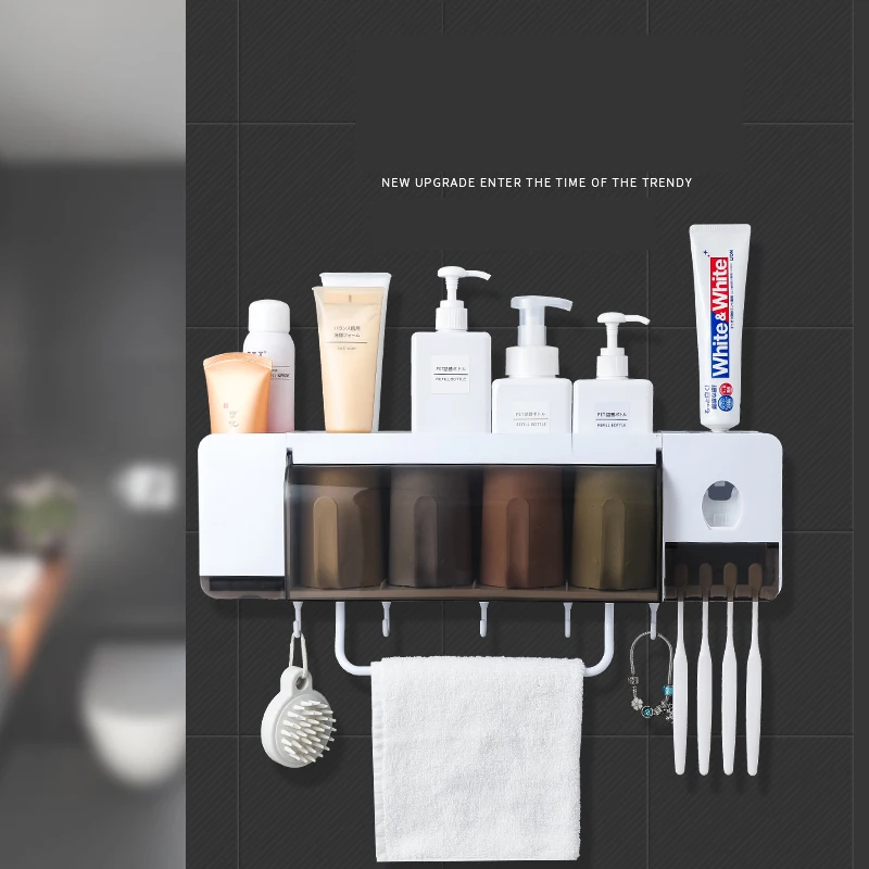 050 Fashion Wall Mounted Toothbrush Holder Automatic Toothpaste Dispenser Holder Family Rack Squeez