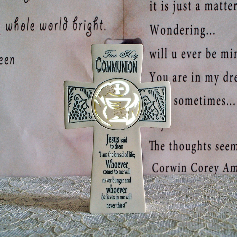 BEST QUALITY Cross Statue God Christian Sculpture LED Light Resin Cross Jesus Jewelry Family Decoration Christma
