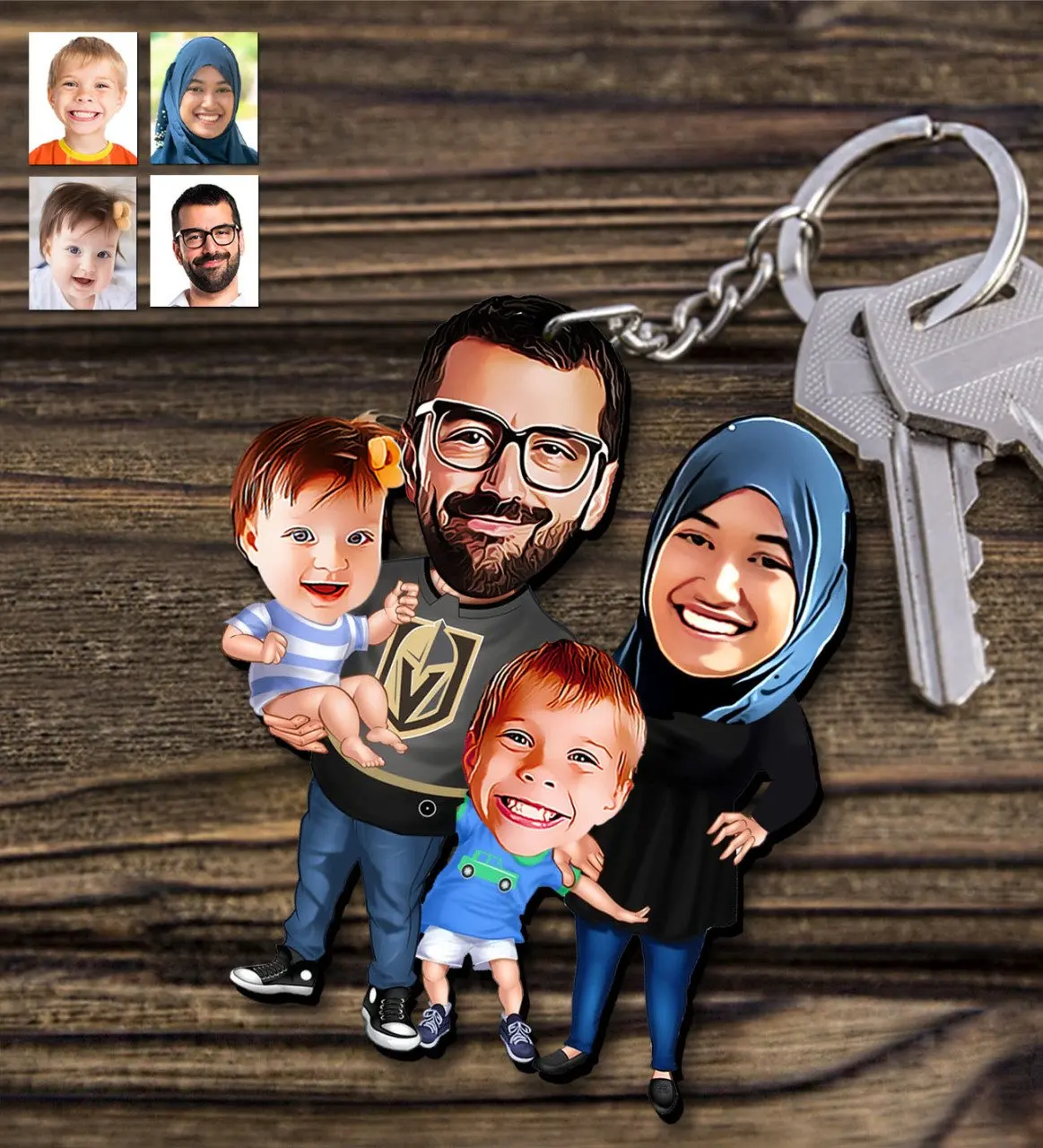 BEST QUALITY Personalized Family Caricature Of Wood keychain-3