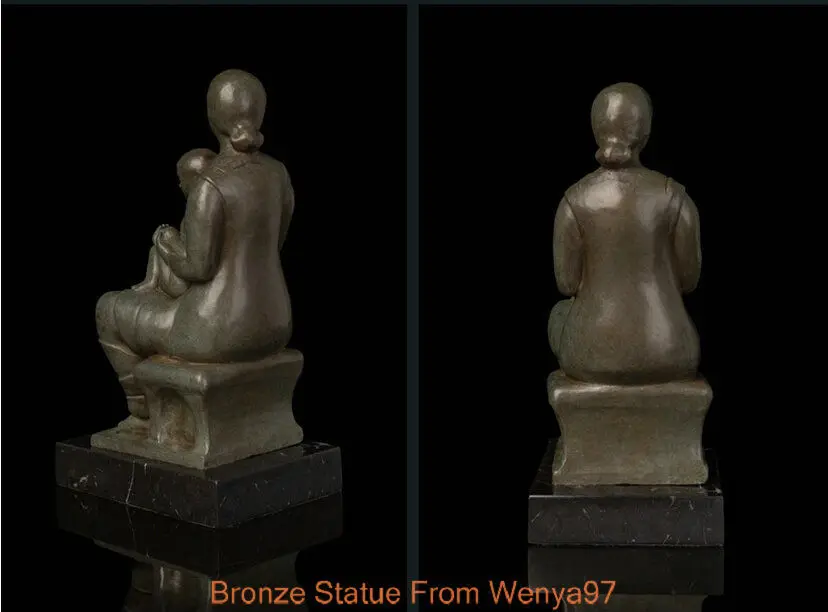 BEST SELLER SS Art Deco Sculpture Mother And Son Family Theme Bronze Statue QQ