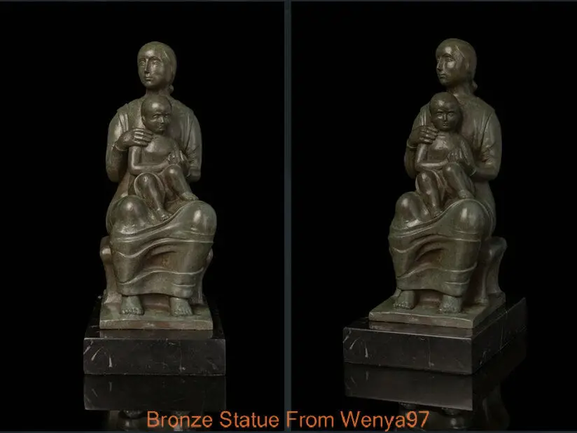 SS Art Deco Sculpture Mother And Son Family Theme Bronze Statue QQ