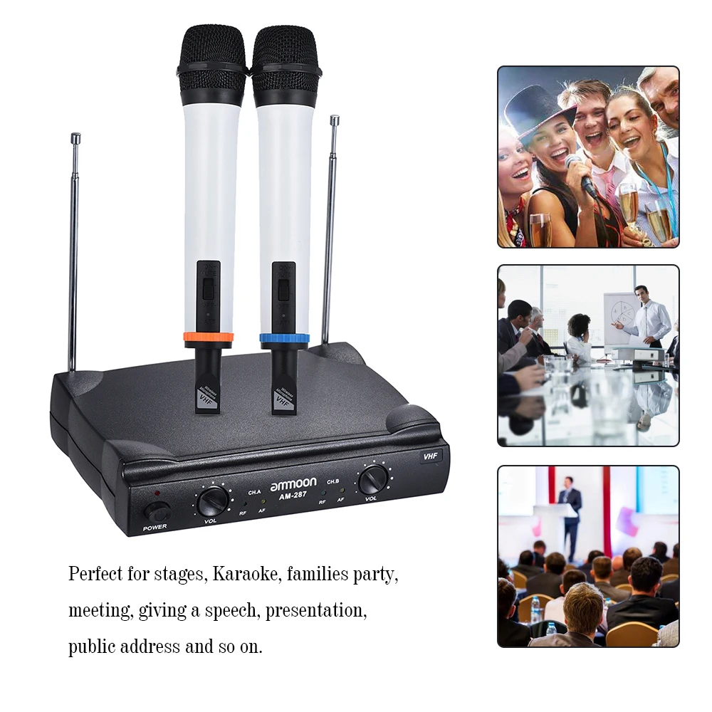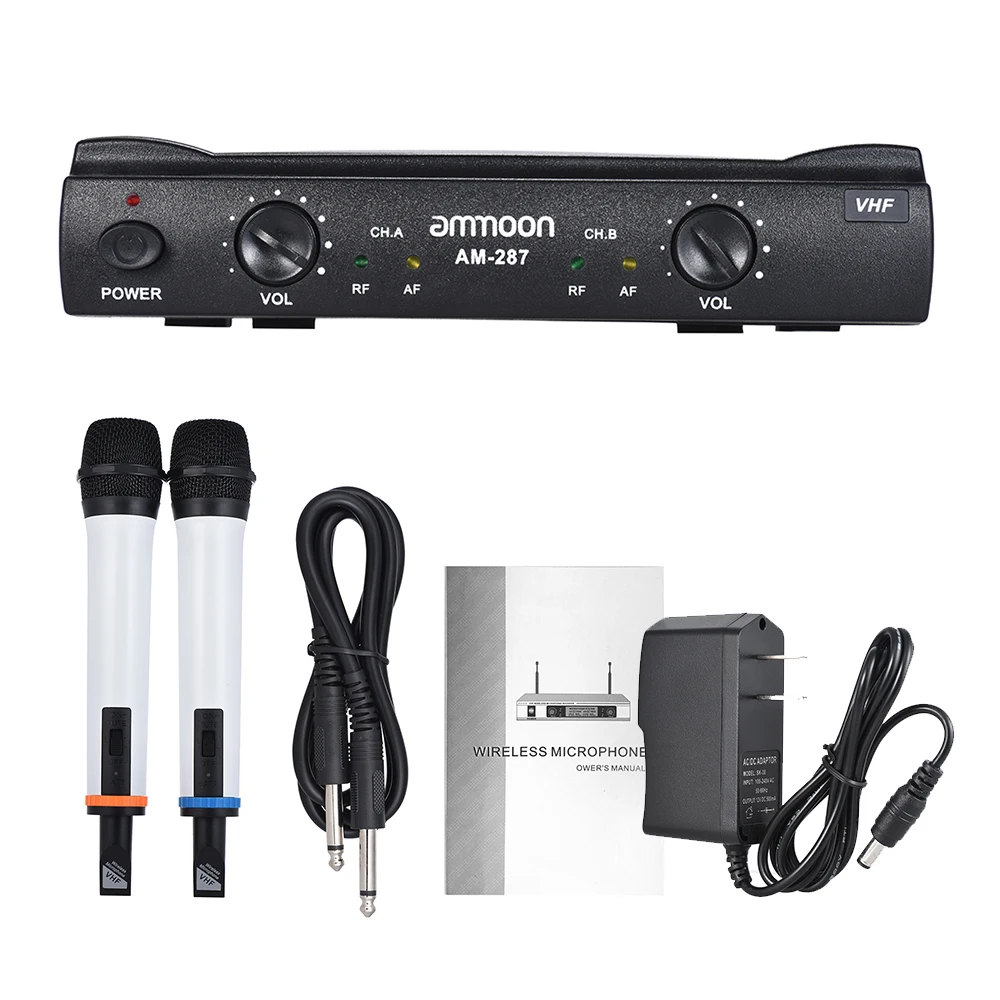 Hot Sale Hot New Dual Channel VHF Wireless Handheld Microphone System 2 Mics 1 Receiver 6.35mm Audio Cable f