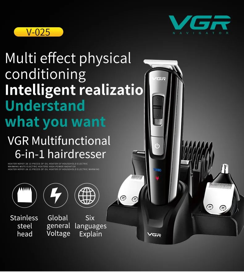 VGR 5-in-1 hair clipper Nose hair cleaner Shaver Cleanser Shaving device for a family