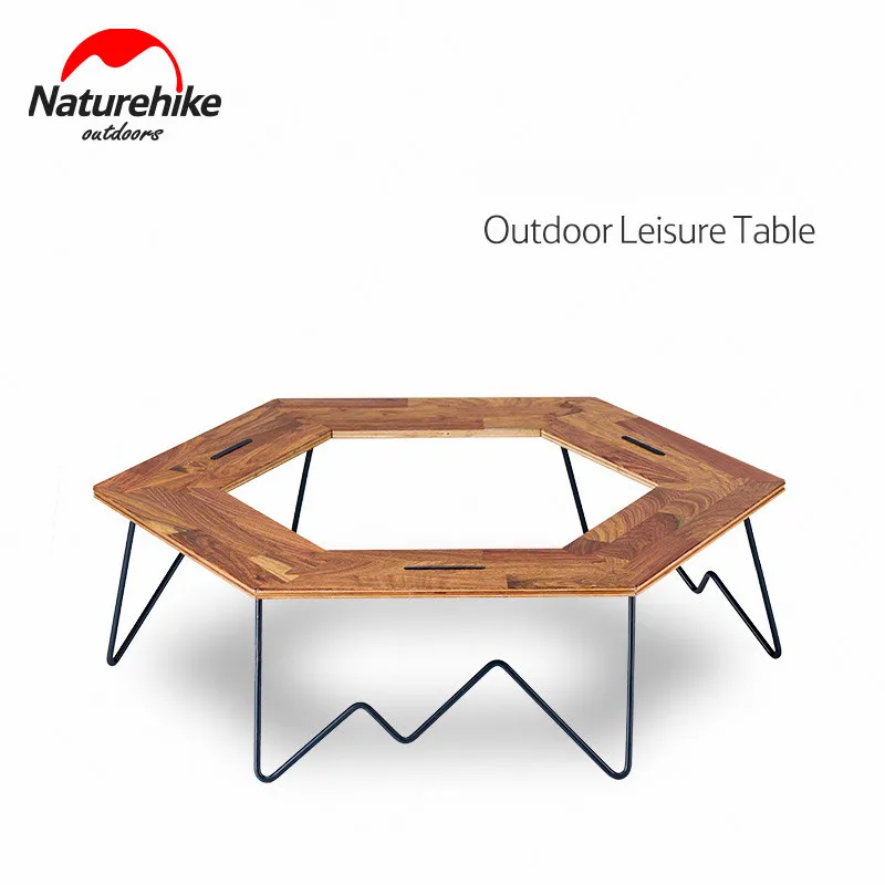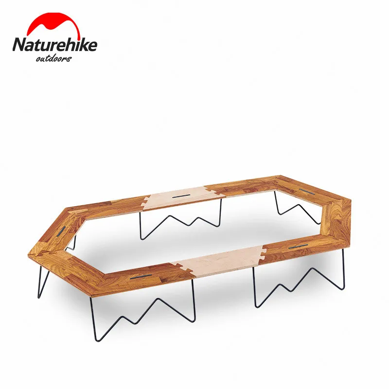 HIGH QUALITY Naturehike Camping Table Hexagonal Splicable Table Wooden Panel Iron Bracket Easy Assembly Family O