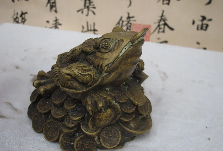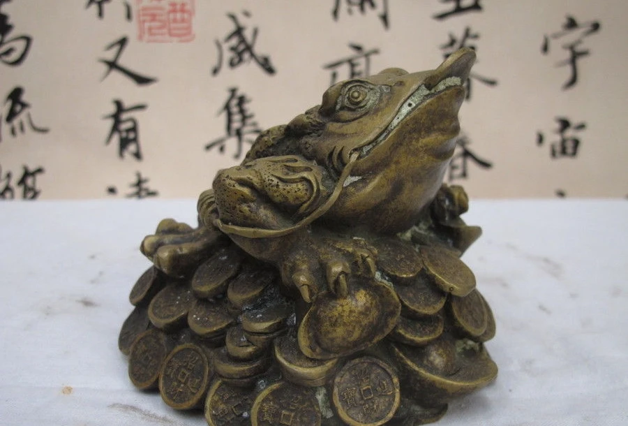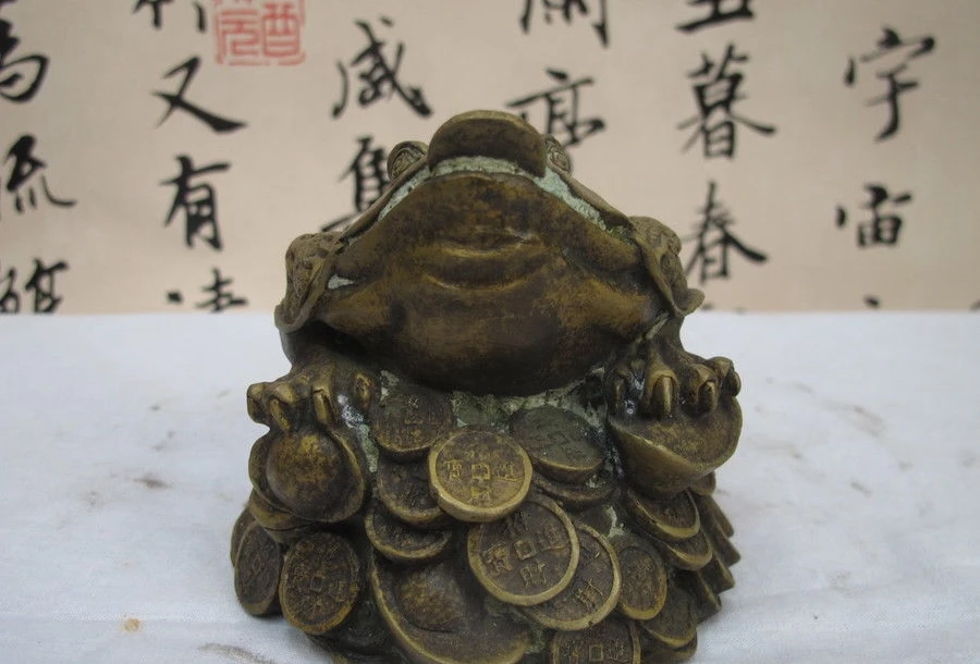 Best Seller China FengShui bronze Copper Lucky Money Gold toad Family Attract Wealth Statue a(5.19)