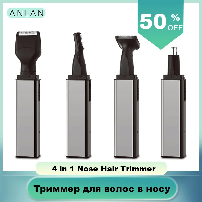 HIGH QUALITY ANLAN Electric Nose Ear Hair Trimmer Rechargeable Beard Eyebrow Trimmer Razor 4 in1 Electric Nose E