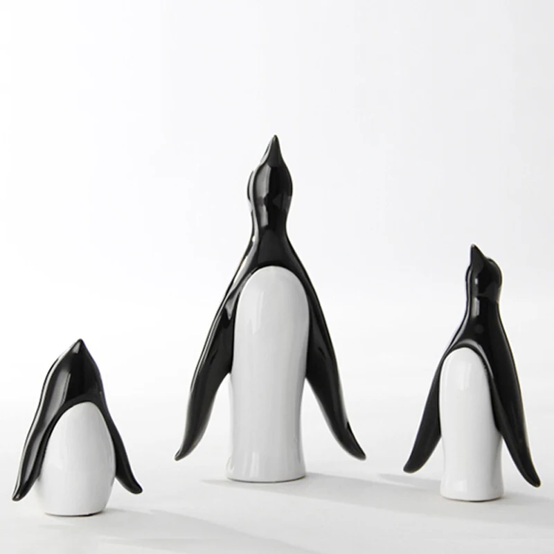 Stylish Porcelain Penguin Family Figurine Set Handmade Ceramic Antarctic Animal Adornment Craft for